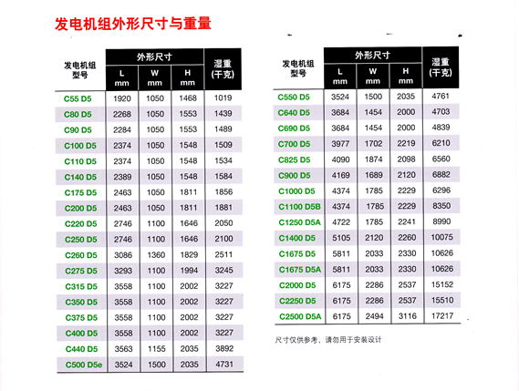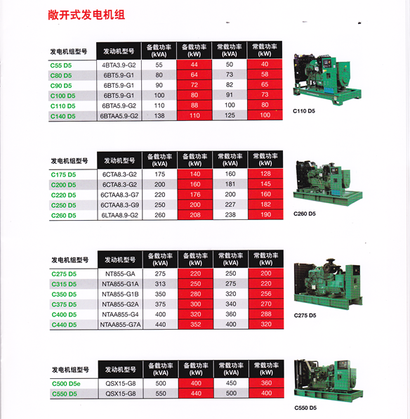 康明斯发电机组-技术参数